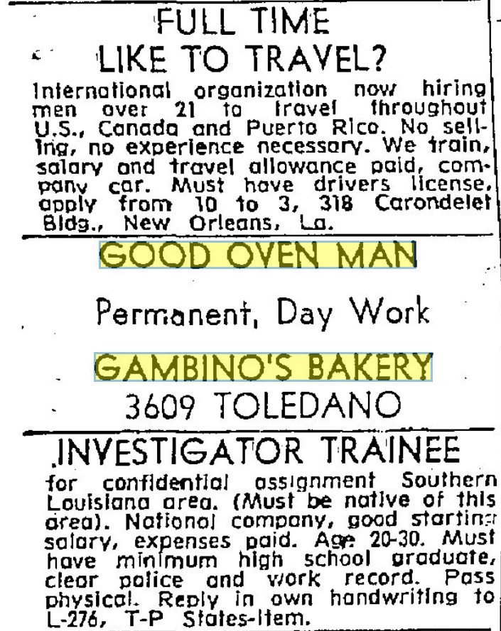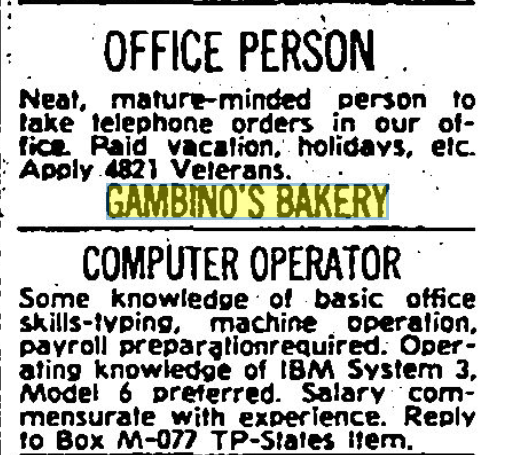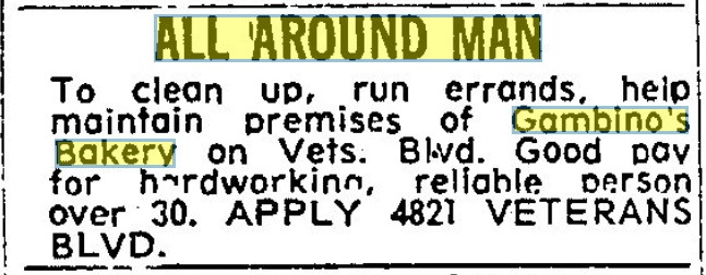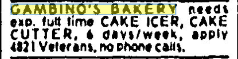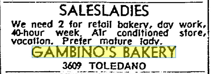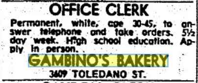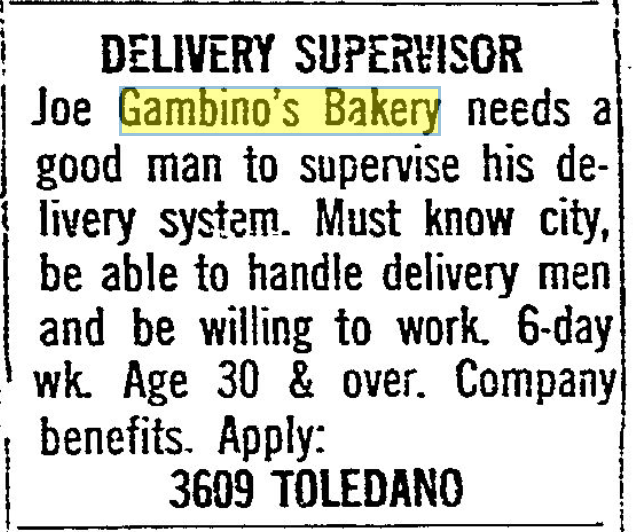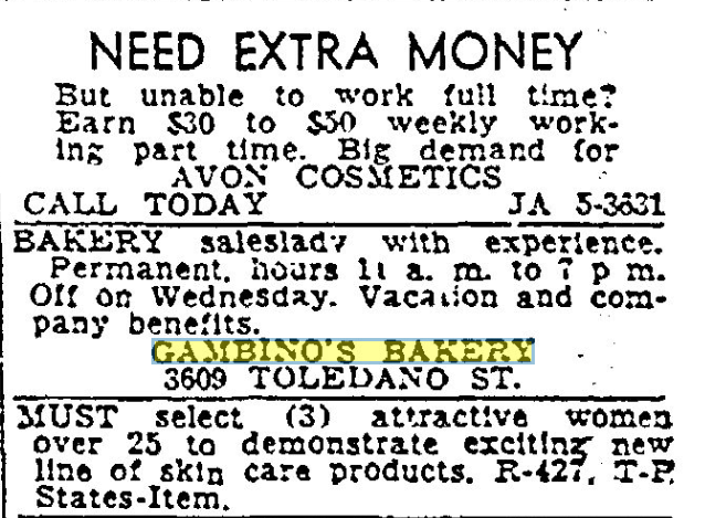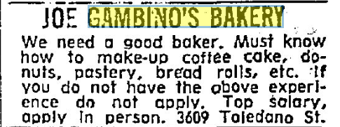 In celebrating the 75th Anniversary of Joe Gambino’s Bakery, we scoured local newspaper archives to see what we could learn about our past. One window into that past was through Help Wanted ads. They tell us a lot about our bakery, as well as how much our world has changed these last seven-and-a-half decades.
