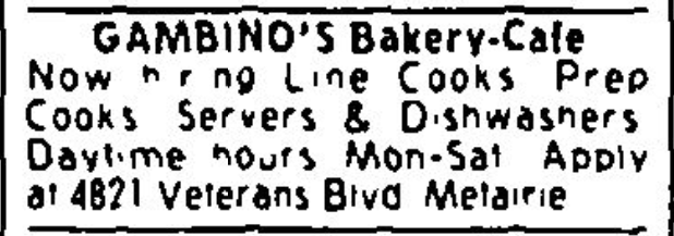 Gambino’s and many of its stores were fortunate to return following the storm, but one thing that didn’t return were our ads looking for employees via the newspaper.