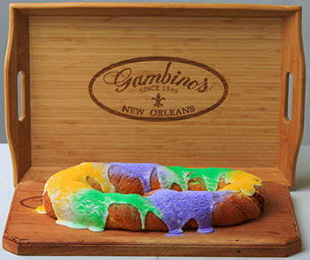 The “king cake” takes its name from the biblical three kings. In Catholic liturgical tradition, the Solemnity of Epiphany – commemorated on January 6 – celebrates the visit of the Magi to the Christ Child. The Eve of Epiphany (the night of January 5) is popularly known as Twelfth Night (the Twelve Days of Christmas are counted from Christmas Eve until this night). The season for king cake extends from the end of the Twelve Days of Christmas, up until Mardi Gras, or “Fat Tuesday;” the day before the start of Lent. Some organizations or groups of friends may have “king cake parties” every week through the Carnival season. Whoever gets the King Cake baby is expected to buy the next cake for these get-togethers.