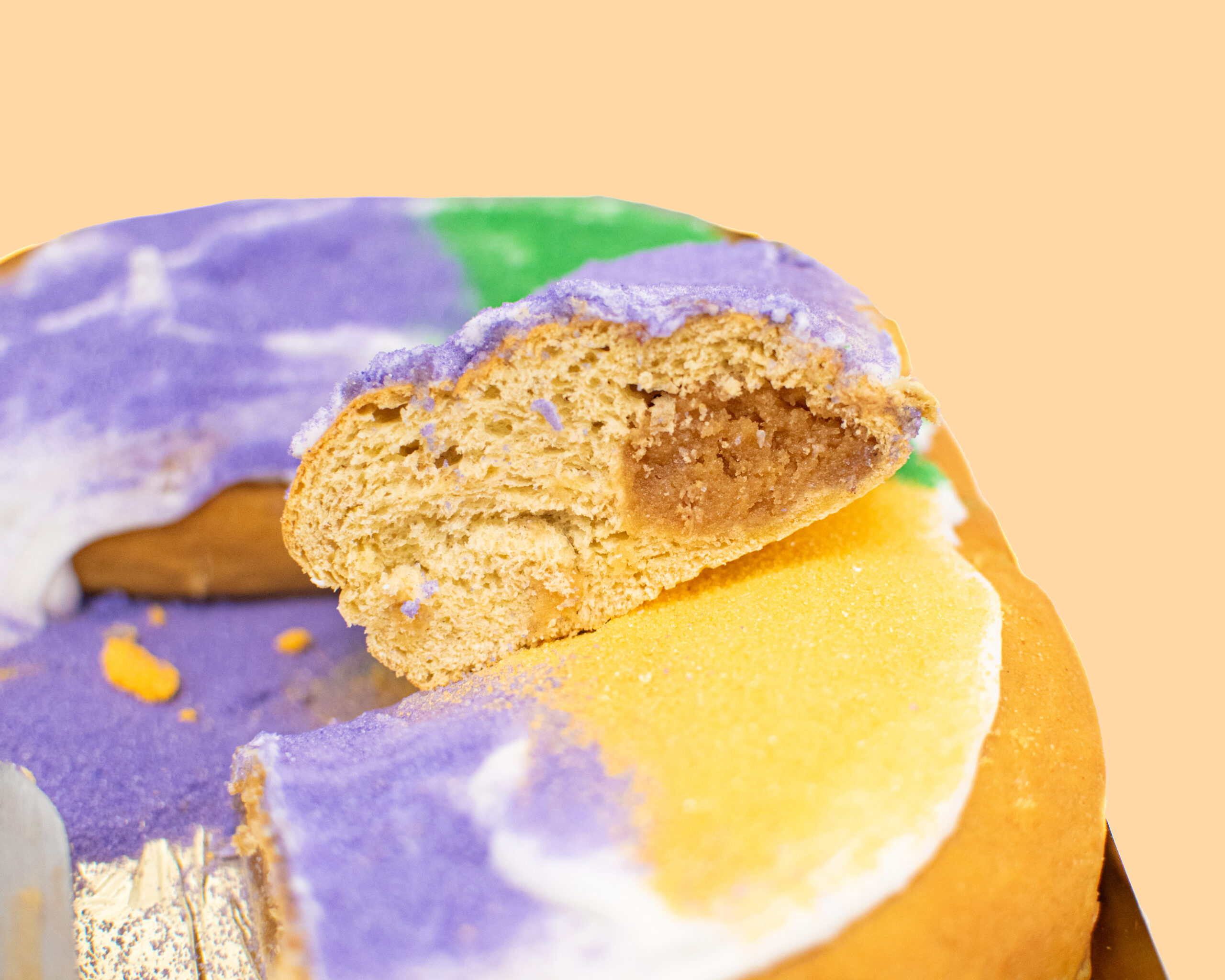 Almond Wedding Cake is a classic New Orleans flavor that pairs perfectly with any sweet treat. The Almond Wedding Cake filled King Cake is the perfect marriage of two local favorites that you can enjoy any time, no weddings or parades needed!